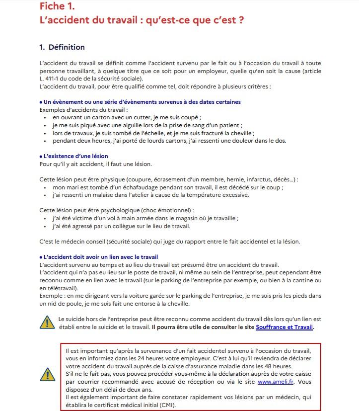 Découvrez ci-dessous la fiche 1 qui définit notamment l’accident du travail :