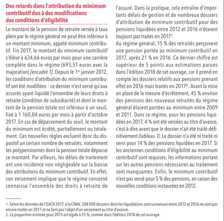 Selon les auteurs de la proposition de loi, on dénombrerait des dizaines de milliers de travailleurs se retrouvant sans aucun revenu au premier jour de leur retraite. En effet, selon l’enquête annuelle de 2019 auprès des caisses de retraite (EACR), 263 000 dossiers d’attribution de minimum contributif (dont les liquidations sont survenues entre 2012 et 2018) n’étaient ainsi pas encore traités en 2019 et n’ont pas fait l’objet d’un versement d’avance.