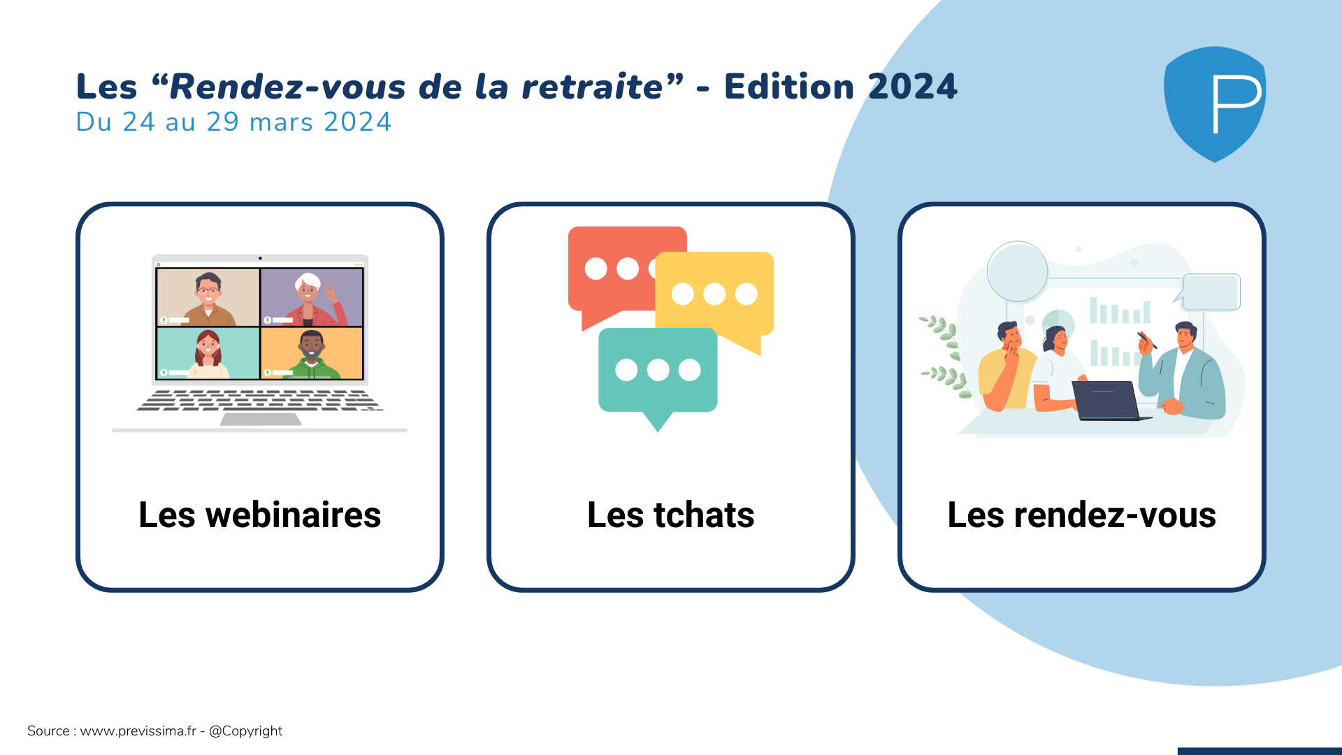 Le saviez-vous ? Vous pouvez déjà vous inscrire à ces webinaires. Si vous n’avez pas la possibilité de les suivre en direct, sachez qu’un replay sera mis à votre disposition sur le site des Rendez-vous de la retraite.
