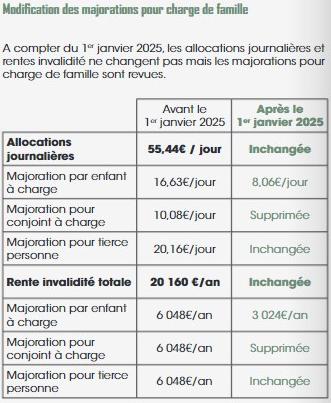 Mais, comme pour les indemnités journalières, les majorations pour charge de famille seront drastiquement réduites dès le 1er janvier 2025 :
