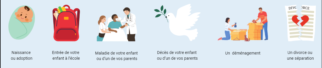 - L’arrivée de votre enfant (naissance ou adoption) ou son entrée à l'école ;