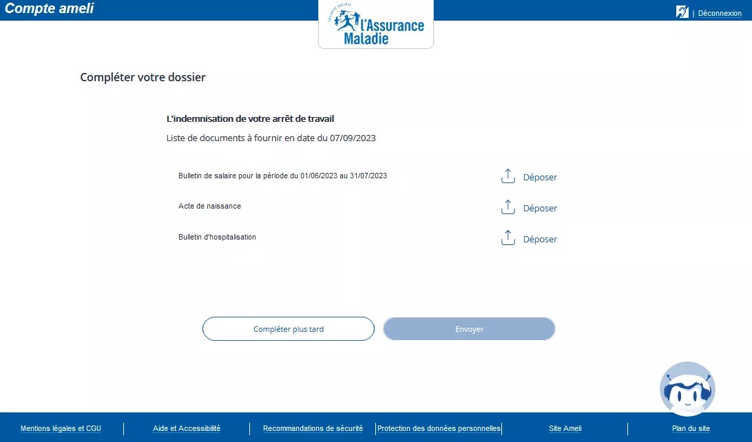 Notez qu’il est possible de recevoir plusieurs notifications de complément de dossier. Chaque notification correspond à une démarche différente (arrêt de travail et Complémentaire santé solidaire par exemple). Il est important de répondre à toutes ces notifications une par une et le plus rapidement possible.