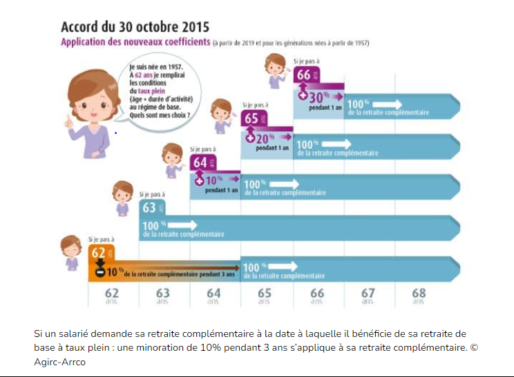 - Première situation, vous décider de partir dès l’âge du taux plein : votre pension de retraite AGIRC-ARRCO subira alors une décote (malus) de 10 % pendant 3 ans, au maximum jusqu’à l’âge de 67 ans (sauf cas particuliers d’exonération) ;