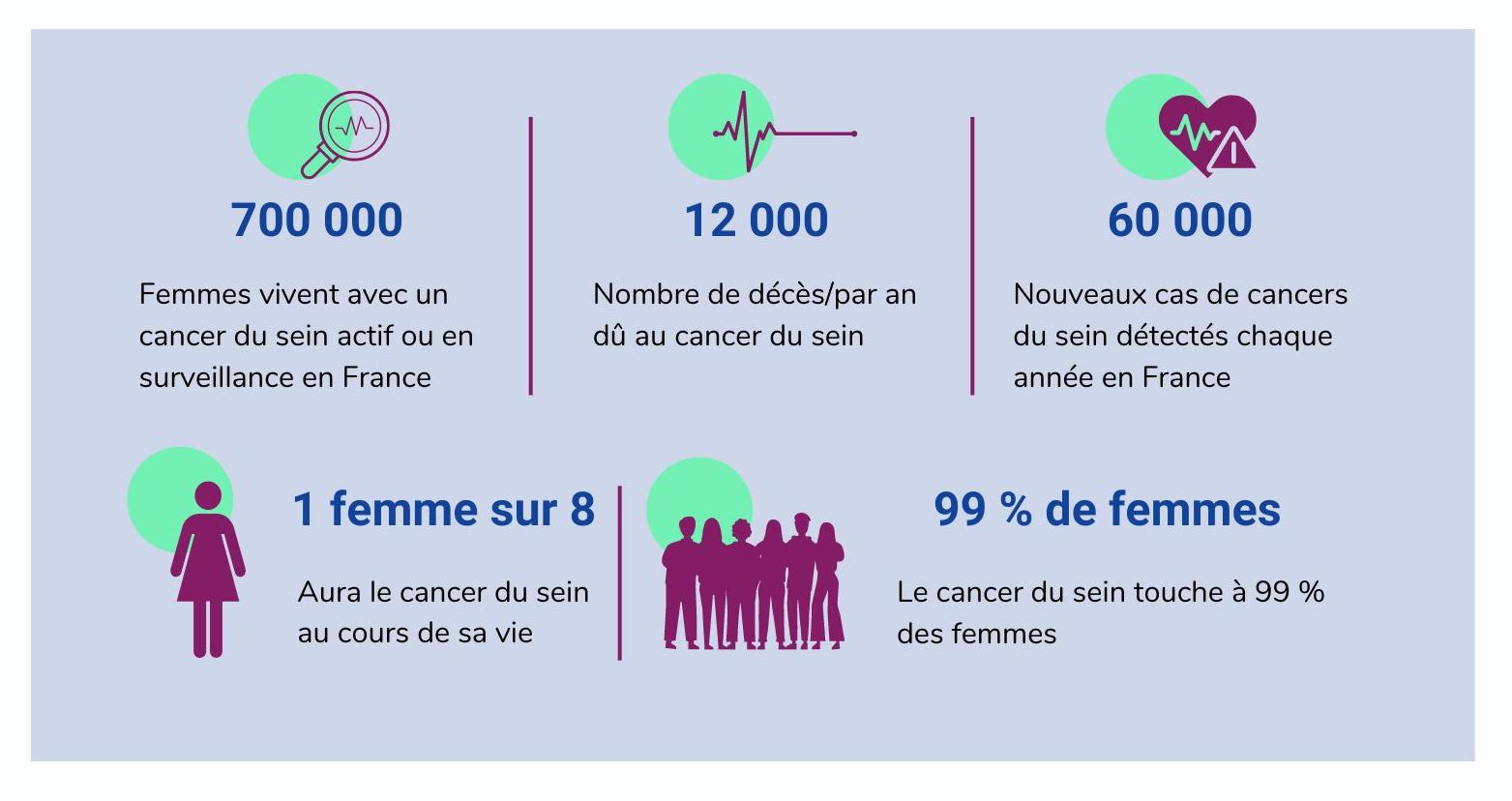 1 femme sur 8 sera touchée par le cancer du sein dans sa vie. Cette maladie est reconnue comme Affection de longue durée (ALD), ce qui permet théoriquement la prise en charge des soins à 100 % par la Sécurité sociale.