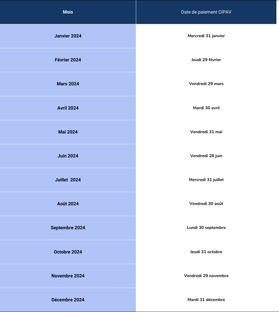 Cipav : calendrier prévisionnel de versement 2024