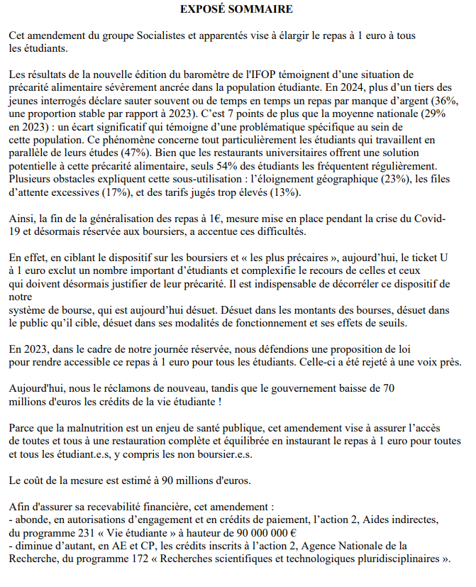CROUS : le repas à 1 € pour tous les étudiants adopté en commission des finances ! (PLF 2025)