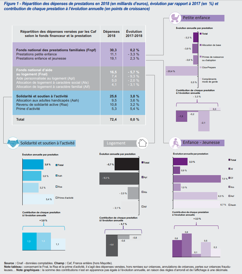 En 2018, les CAF ont versé 72,4 milliards d’euros de prestations