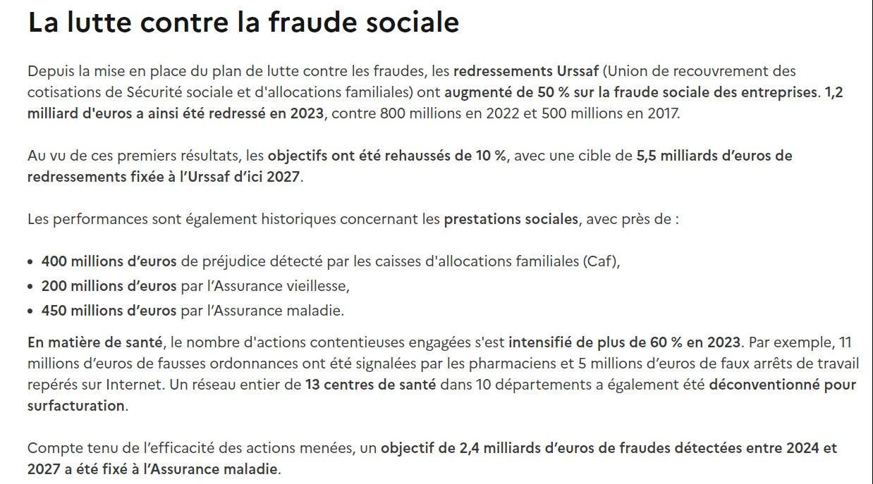 Pour lutter efficacement et durablement contre la fraude sociale et fiscale, le Gouvernement a dévoilé en 2023 un plan en 35 mesures, prévoyant le déploiement de moyens humains et budgétaires sans précédent afin de combattre le phénomène.