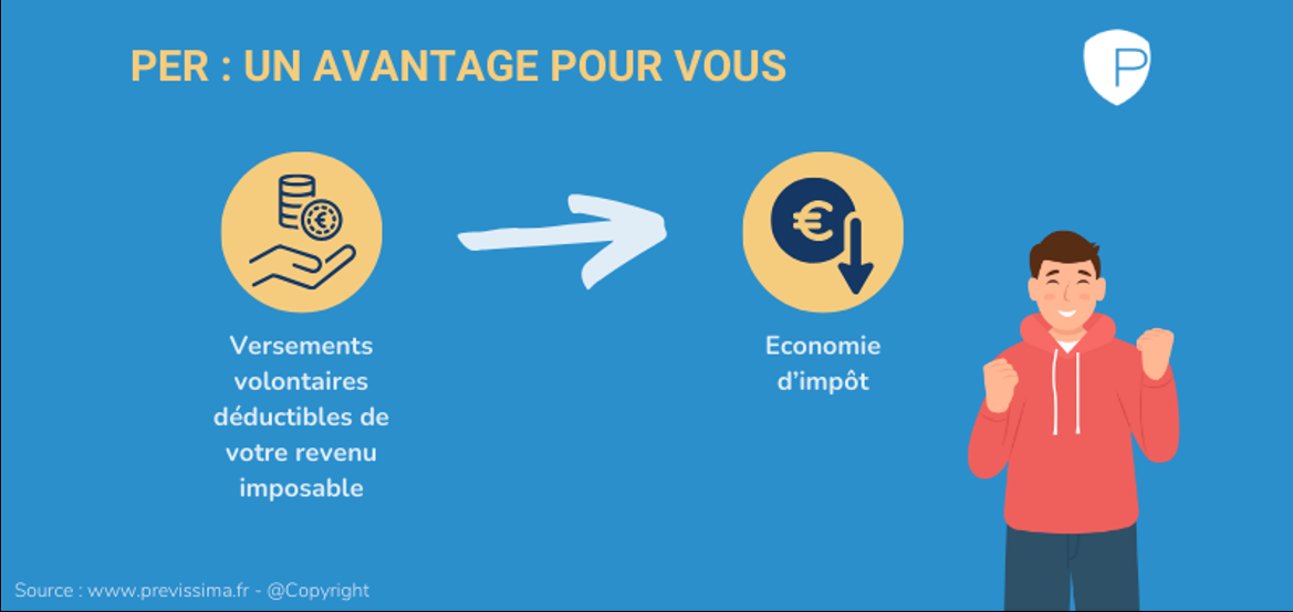 Souscrire un PER pour vos enfants a également un avantage pour vous. En effet, de votre côté, vous bénéficiez d’un avantage fiscal loin d’être négligeable : les versements que vous effectuez pour votre enfant sont déductibles de votre revenu imposable, dans la limite de 10 % du plafond annuel de la Sécurité sociale (PASS) de l’année N-1, soit 4 114 € pour les versements effectués en 2023. A terme donc, vous réalisez une économie d'impôt.