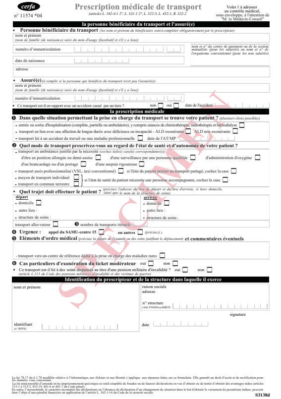 En principe, il vous remet une prescription médicale (ou « bon de transport »). Ce formulaire est rempli par votre médecin, et détermine :