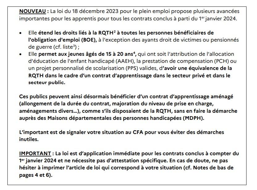 - Une aide à l'embauche en contrat d’apprentissage d’une personne en situation de handicap (la demande peut être déposée par l’employeur dans les six mois suivant la date d’embauche) ;