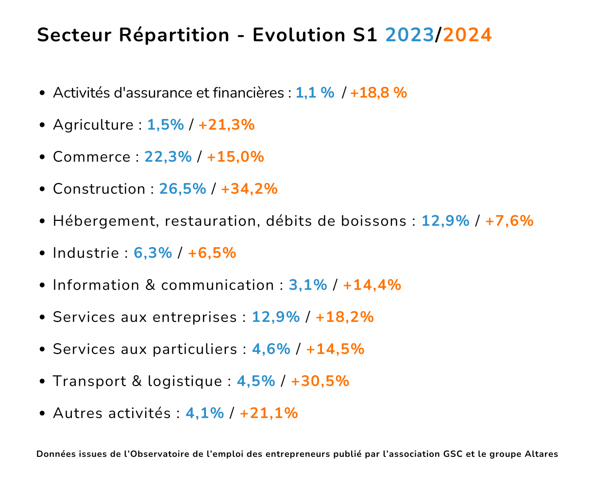 Sur les 6 premiers mois de l’année 2024, ce sont 29 958 chefs d’entreprise qui ont cessé leur activité en France, selon l’Observatoire de l’emploi des entrepreneurs publié par l’association GSC et le groupe Altares, soit une hausse de + 18,4 % comparée à la même période l’année précédente.