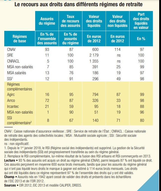 Le tableau ci-dessous provient d'une étude de la DREES sur le non-recours aux droits à retraite, qui montre bien que le taux de recours n'atteint pas les 100 %