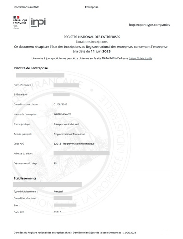 Si votre entreprise est immatriculée au Registre national des entreprises (RNE), vous pouvez obtenir une attestation d'immatriculation via data.inpi.fr ou l'Annuaire des entreprises. Elle vous permet de prouver l'existence légale de votre entreprise et de confirmer les informations inscrites au RNE.