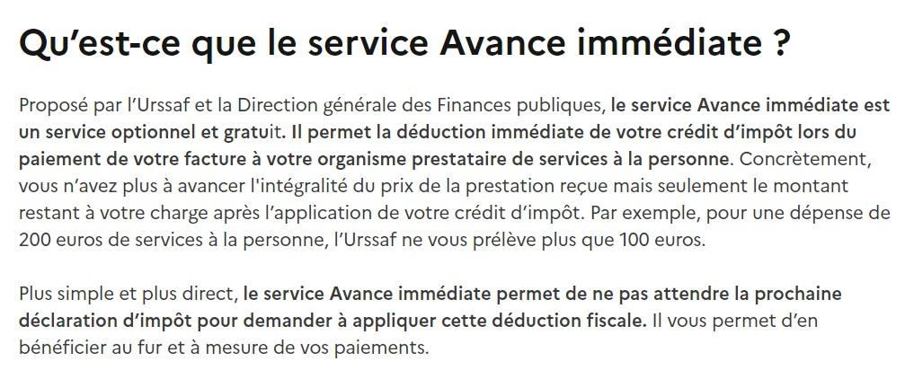 Si vous employez un salarié à domicile et que vous utilisez le service de déclaration simplifié « CESU + », ou si vous faites appel à un prestataire, vous pouvez bénéficier de l’avance immédiate de crédit d’impôt à hauteur de 50 % des dépenses engagées.