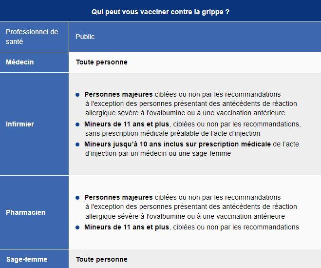 Les professionnels de santé habilités à vacciner contre la grippe sont :