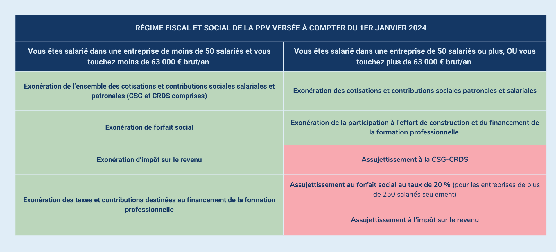 Que se passe-t-il maintenant si vous êtes salarié d’une entreprise de 50 salariés ou plus, ou si vous touchez un salaire supérieur à 3 SMIC ? Dans ce cas, votre prime bénéficiera d’un régime social et fiscal moins avantageux que celle versée dans les entreprises de moins de 50 salariés aux salariés dont le salaire ne dépasse pas 63 000 €.