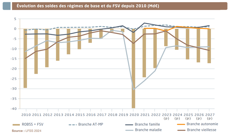 Mais attention : l’embellie 2023 ne pourrait être qu’une façade. La loi de programmation des finances publiques pour les années 2023 à 2027 prévoit que le déficit devrait se creuser à nouveau dans les années à venir (miné par la branche vieillesse), avec un trou de 17,7 milliards d’euros attendu en 2027. Affaire à suivre.