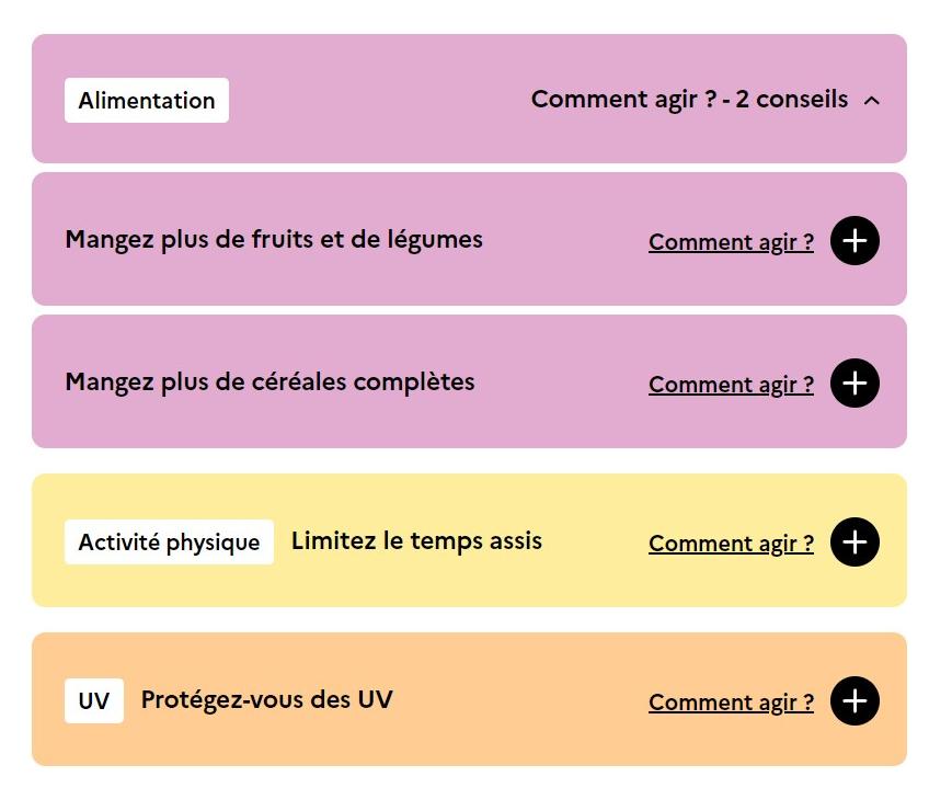 Le test se fait en quelques minutes : il suffit de cocher parmi les réponses à choix multiples. À la fin, vous bénéficiez d’un bilan personnalisé avec des conseils et propositions d’actions ciblées pour limiter ses risques de cancer.