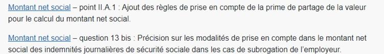 - Le premier concerne la prime de partage de la valeur (PPV), point II, A, 1 : il est désormais précisé qu’elle est prise en compte dans le montant net social seulement lorsque les sommes sont directement versées par l’employeur au salarié. À l’inverse, la PPV placée dans un plan d’épargne (PEE, PERECO ou PERO) ne doit pas être intégrée. Cela concerne également la CSG et la CRDS calculée sur la prime.