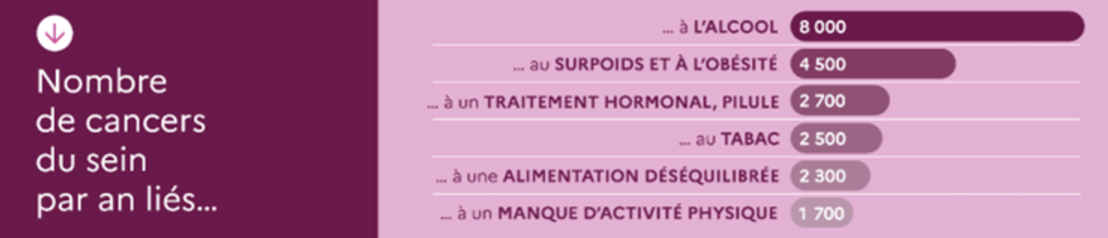 Selon l’Assurance maladie, chaque année, environ 20 000 cancers du sein sont attribuables à nos habitudes de vie. Participer au dépistage et adopter quotidiennement des gestes simples permettent de diminuer son risque de cancer du sein. Parmi les comportements à adopter quotidiennement :