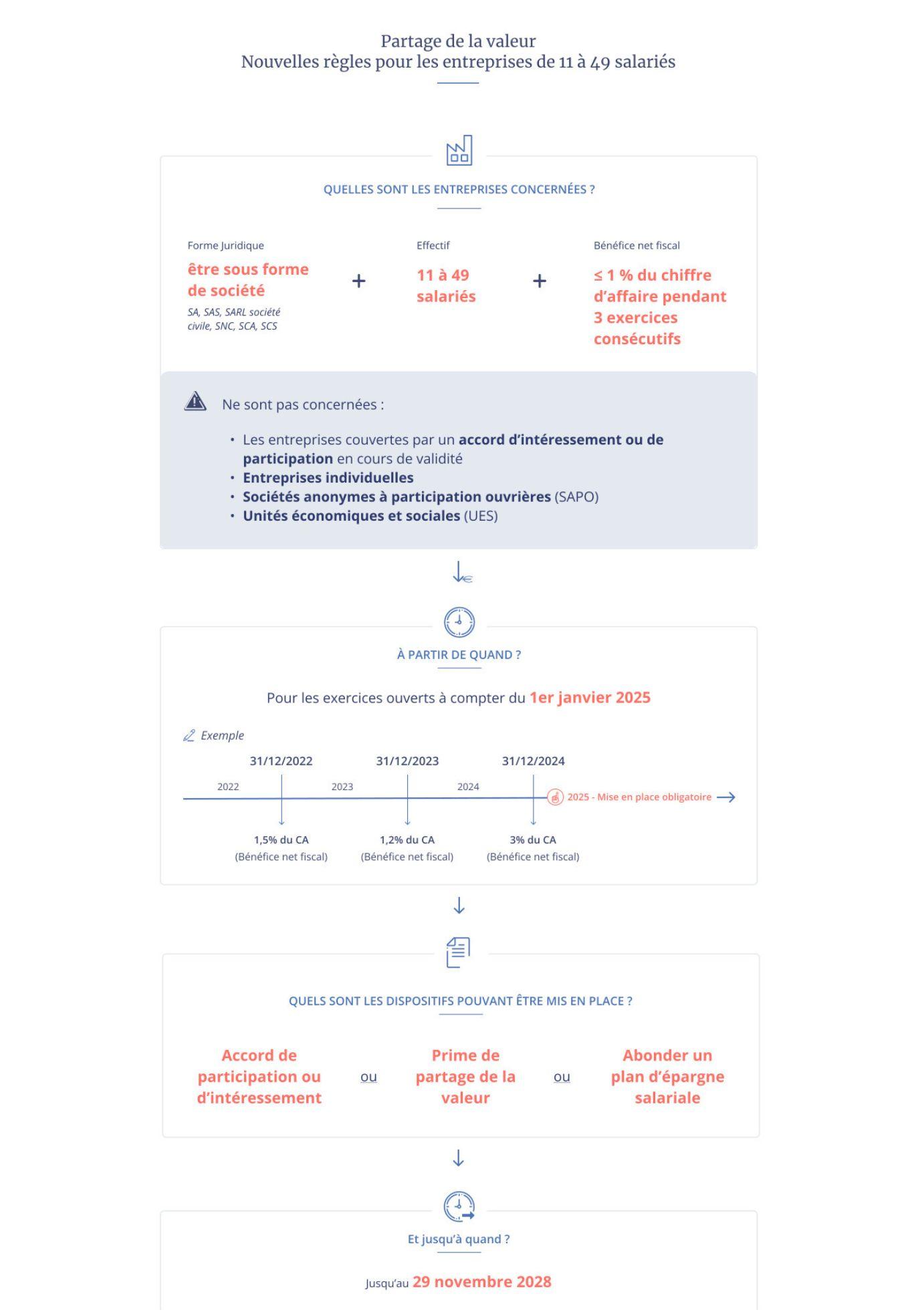 Actuellement, les entreprises employant de 11 et 49 salariés n’ont aucune obligation d’instaurer un dispositif de partage de la valeur (participation, intéressement, plan d’épargne salariale, prime de partage de la valeur) au sein de leur entreprise.