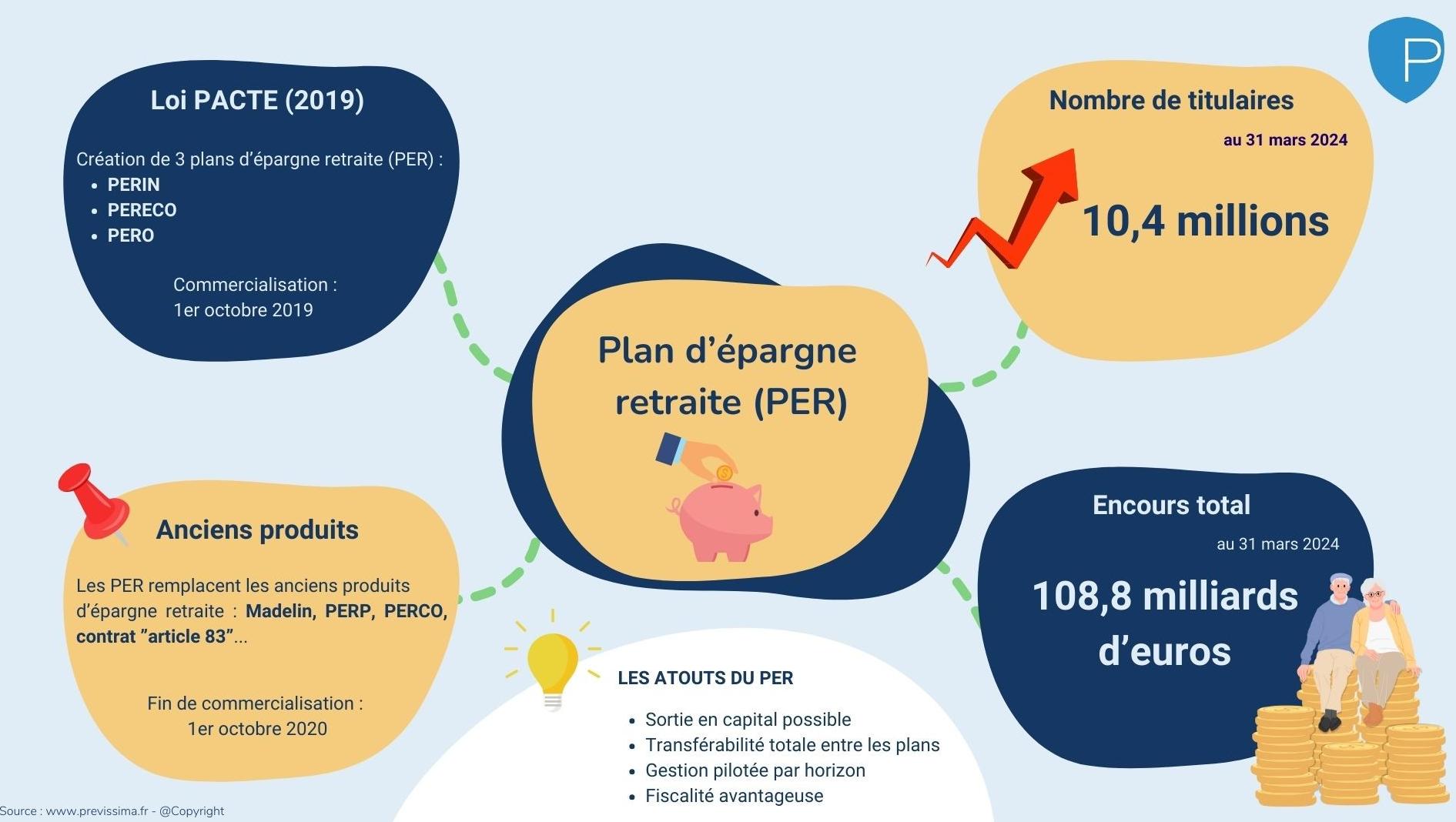 Instauré par la loi PACTE de 2019, le PER est placement à long terme qui permet d’épargner durant votre vie active afin de vous constituer un capital ou une rente viagère à la retraite.