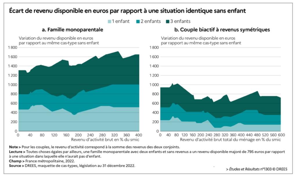 Le constat effectué par la direction d’études statistiques est sans appel : à revenus d’activité donnés, le revenu disponible d’une famille dépasse celui d’un ménage équivalent sans enfant.