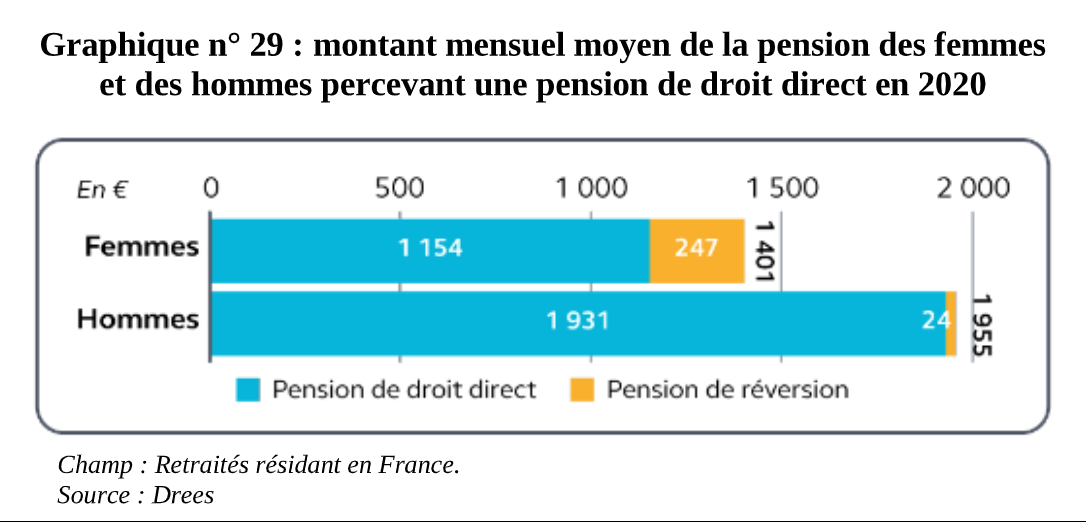 - Les pensions de réversion qui consistent à reverser au conjoint ou à l’ex-conjoint survivant une partie de la pension de réversion décédée : près de 90 % des bénéficiaires sont des femmes.