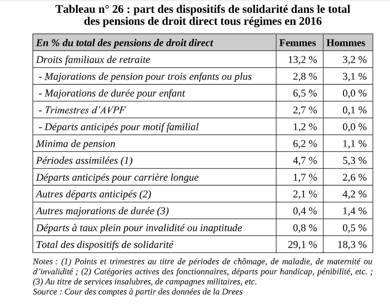 La Cour des comptes constate que certains dispositifs profiteraient davantage aux femmes réduisant ainsi les effets défavorables des règles de calcul de pension.