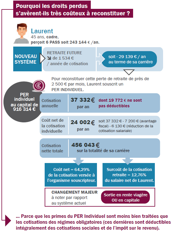 Par ailleurs, l’Institut souligne que les contraintes de la législation limitent les entreprises qui souhaiteraient intervenir dans la couverture retraite des cadres concernés, par exemple par le biais d’un PER entreprise.
