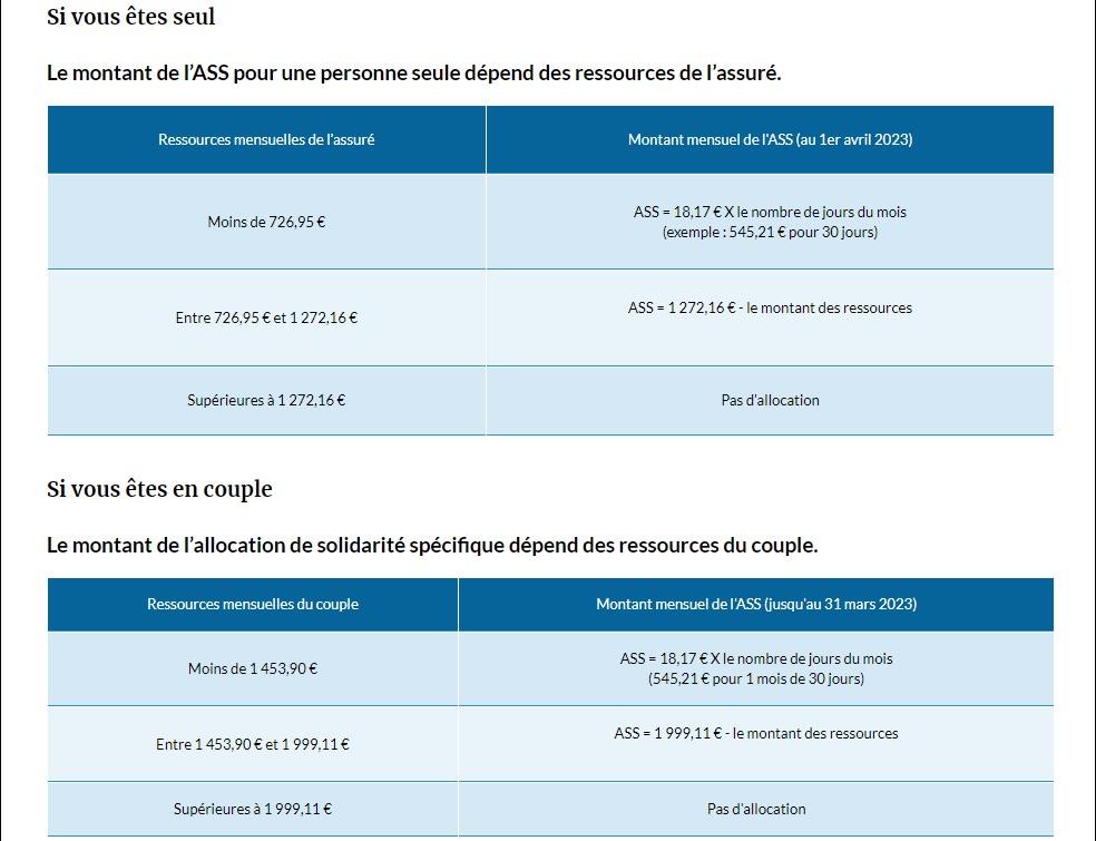 Ci-dessous, les plafonds de ressources donnant droit à l'ASS :