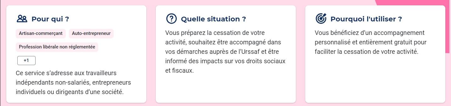 Si vous êtes travailleur indépendant exerçant une activité non-salariée, un entrepreneur individuel ou dirigeant de société et préparez la cessation de votre activité ? Le service Cessation d’activité de l’Urssaf est là pour vous aider ! Vous pourrez accéder à un accompagnement personnalisé dans vos démarches.