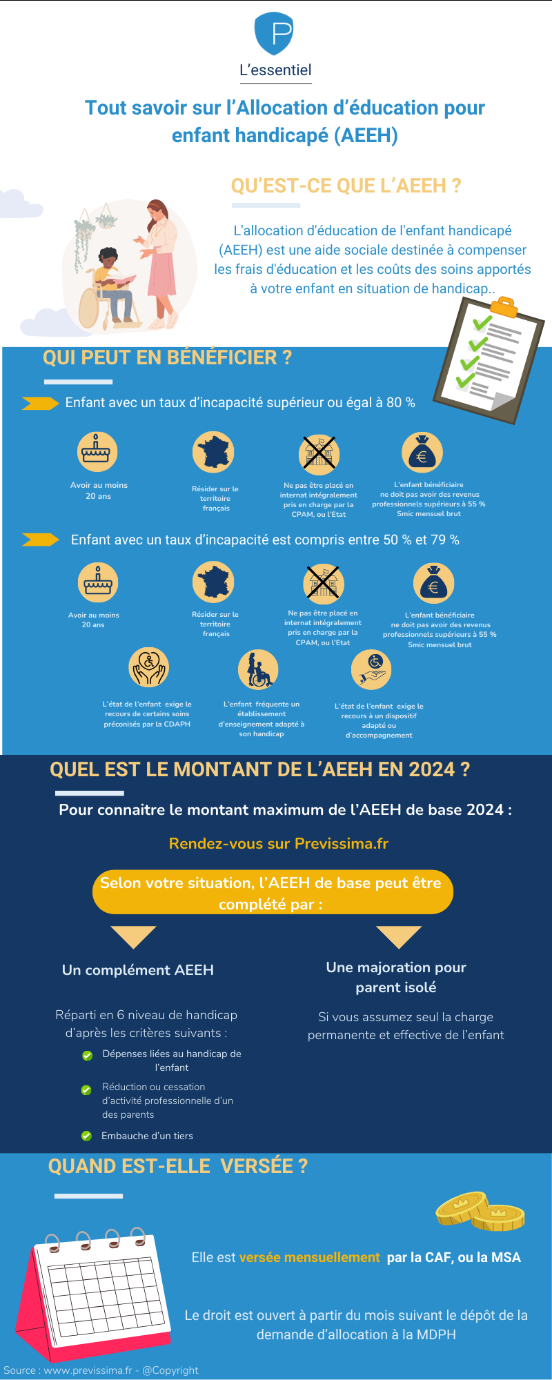 L'allocation d'éducation de l'enfant handicapé (AEEH) est une aide sociale destinée à compenser les frais d'éducation et les coûts des soins apportés à votre enfant en situation de handicap.