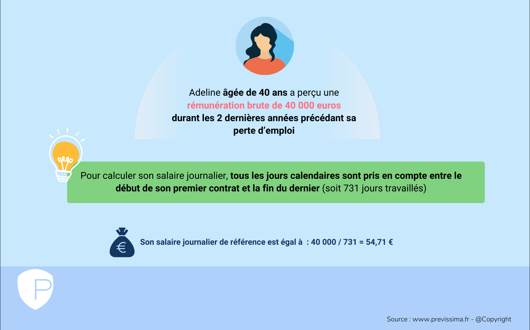 Votre salaire journalier de référence (SJR) se calcule selon la formule suivante :