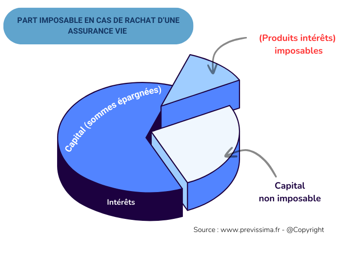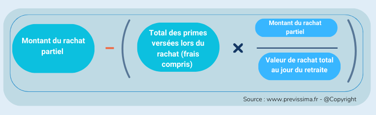 L'assiette sur laquelle est calculée la part taxable en cas de rachat est déterminée selon la formule suivante :
