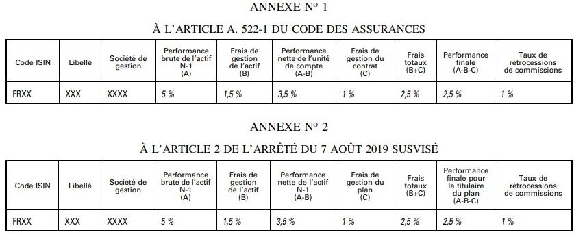 En outre, depuis le 1er juillet 2022, le total des frais supportés par chaque unité de compte ou chaque actif doit être affiché en matière d'information précontractuelle.