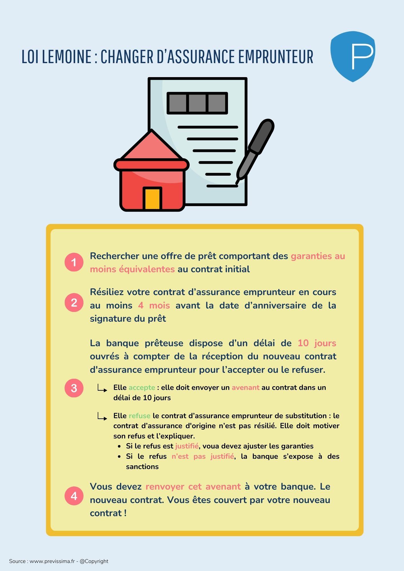 La loi Lemoine du 28 février 2022 « pour un accès plus juste, plus simple et plus transparent au marché de l'assurance-emprunteur » offre la possibilité aux emprunteurs résilier leur contrat d’assurance emprunteur à tout moment sans délai de préavis ni frais ou pénalités, pour en souscrire un nouveau auprès de l’assureur de leur choix.