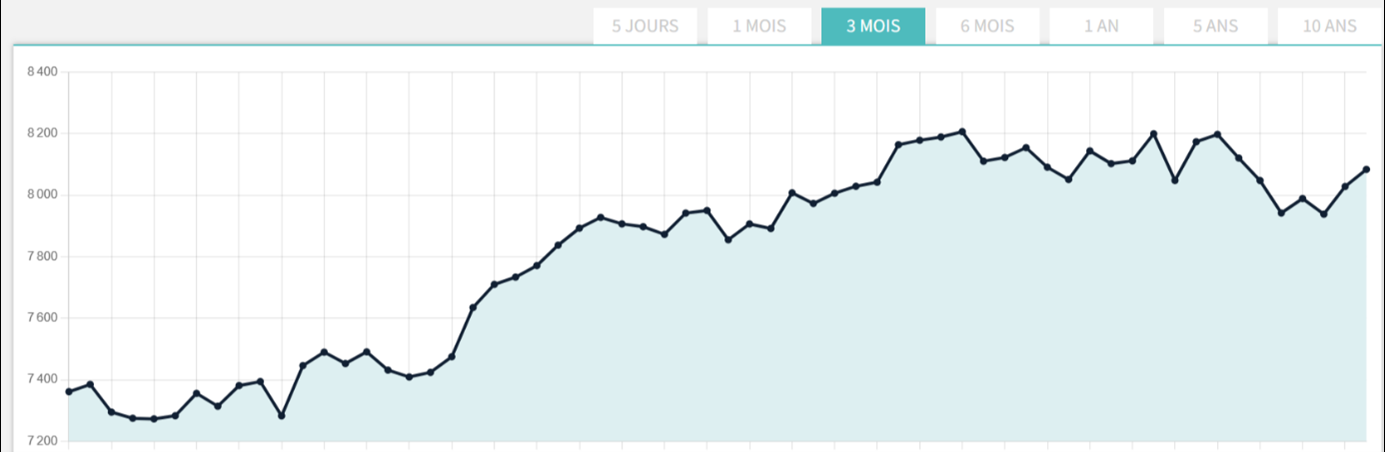 - Evolution du CAC 40 sur 3 mois (janvier-mars 2025)