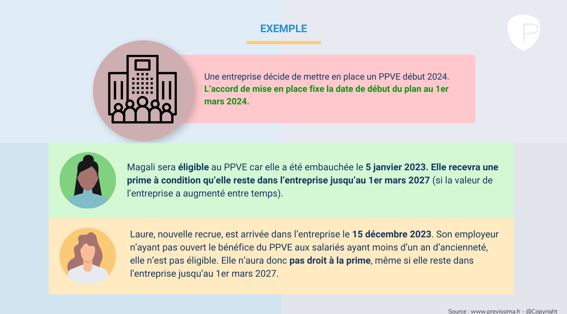 - Mais dans le cas où vous le mettez en place, tous vos salariés devront bénéficier de ce plan. Vous avez simplement la possibilité d’écarter du PPVE les salariés ayant moins d’un an d’ancienneté à la date fixée dans l’accord mettant en place le plan.