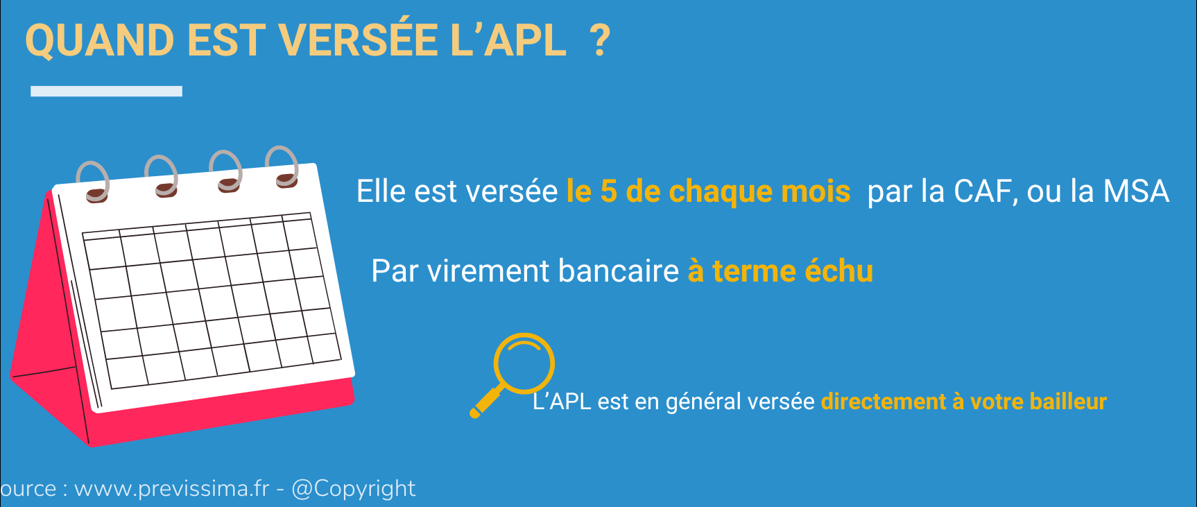 - À date fixe, le 5 de chaque mois. Si le 5 tombe un samedi ou, un dimanche, le versement est reporté au prochain jour ouvré.