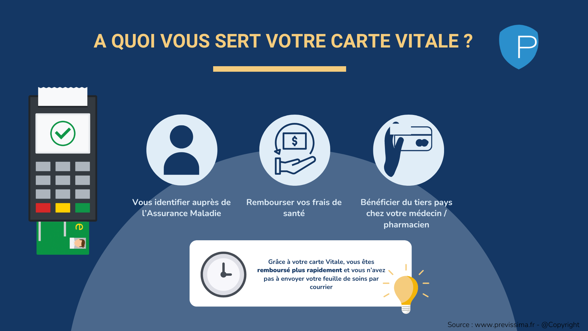 La carte Vitale ne sert pas à payer vos soins. Il ne s’agit pas d’une carte bancaire ! Elle permet de justifier de vos droits auprès des professionnels de santé et d'obtenir un remboursement dans un délai restreint.