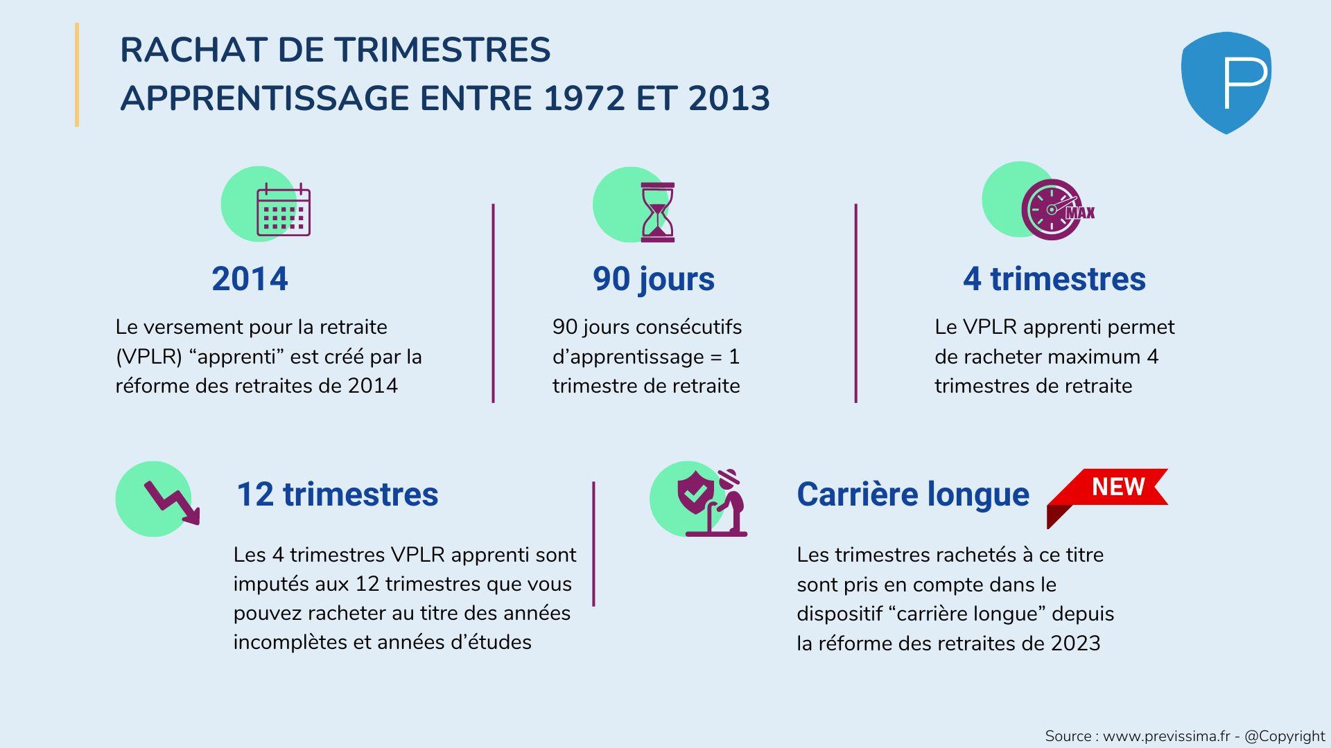 - Autres questions sur le rachat de trimestres de retraite- Réforme 2023 : le rachat de trimestres d’apprentissage permet-il de partir en carrière longue ?