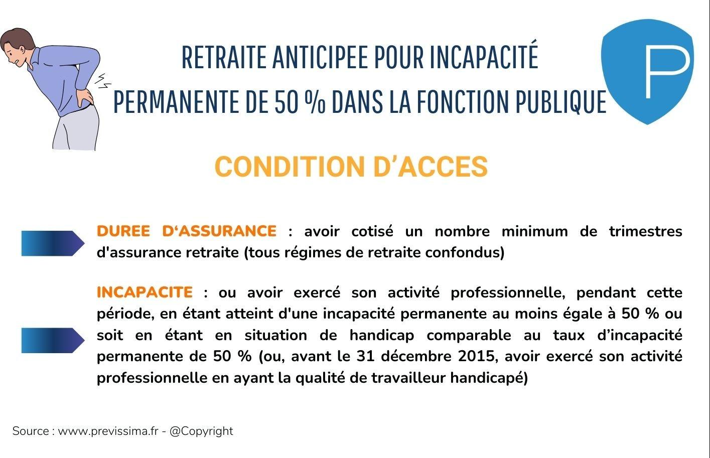- Retraite anticipée au titre d’une incapacité permanente d’au moins 50 %