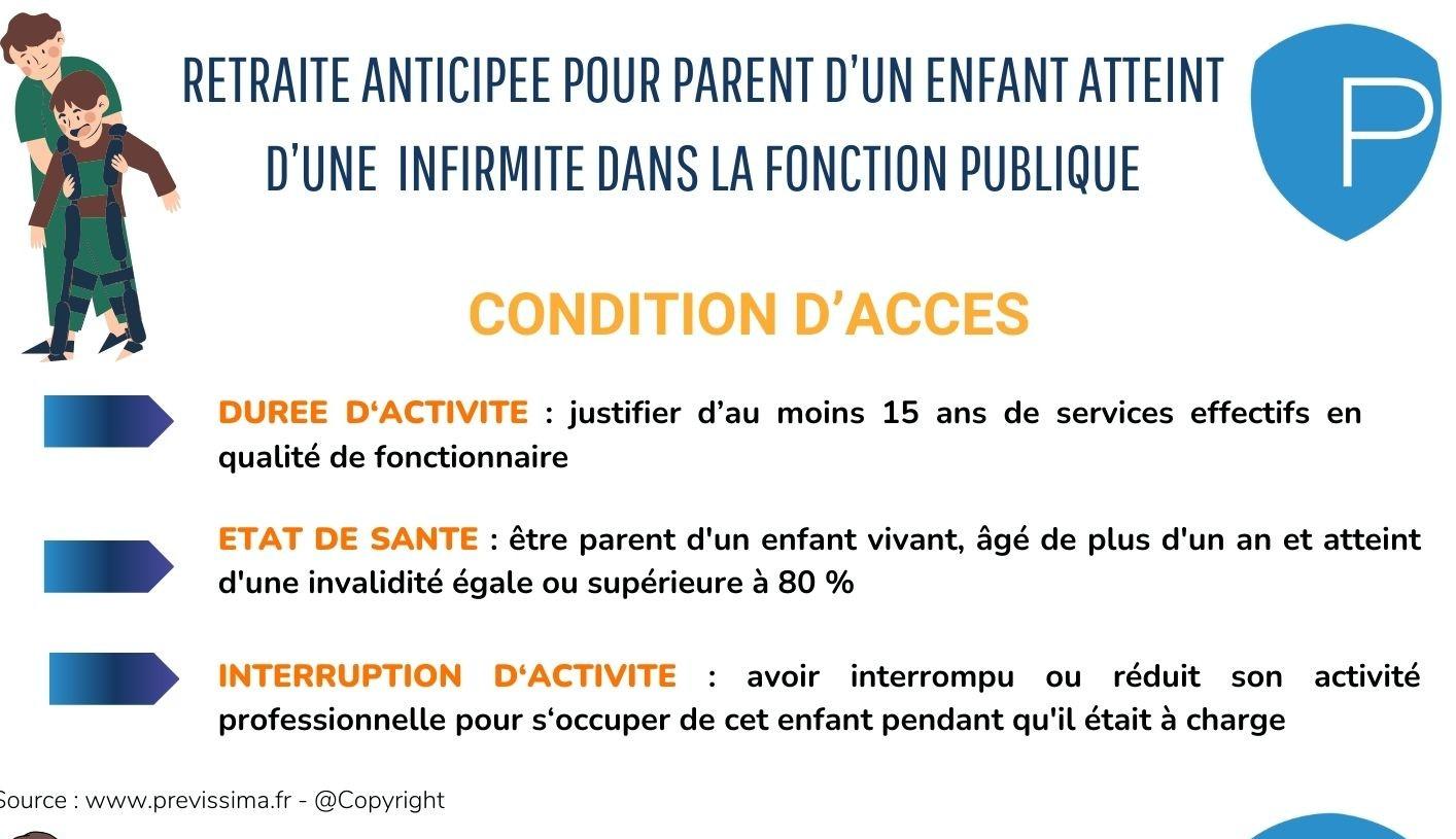 - Le départ en retraite anticipée en qualité de parent d'un enfant atteint d'une infirmité